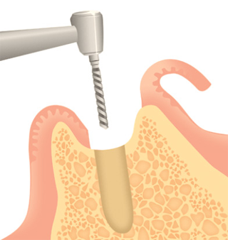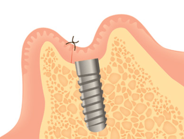 一次手術後、3~6ヶ月の治癒期間をおくことで、インプラントと骨が強い力で結合します(オッセオインテグレーション)。 この期間、仮の歯を使用できる場合もあります。
