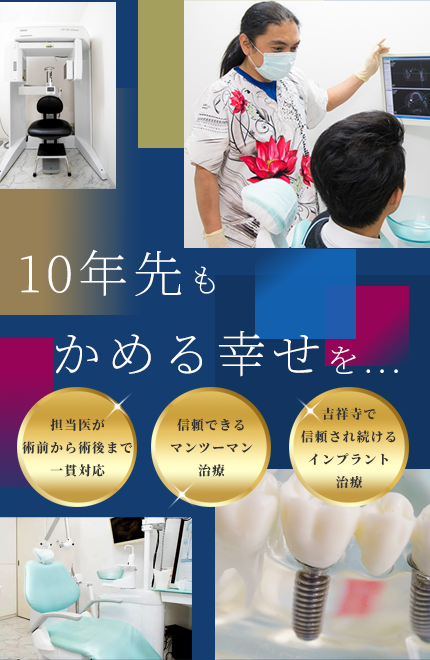 インプラントを長持ちさせるために、定期的なメンテナンスを行います。ご自宅でのケアの仕方もご指導させていただきます。